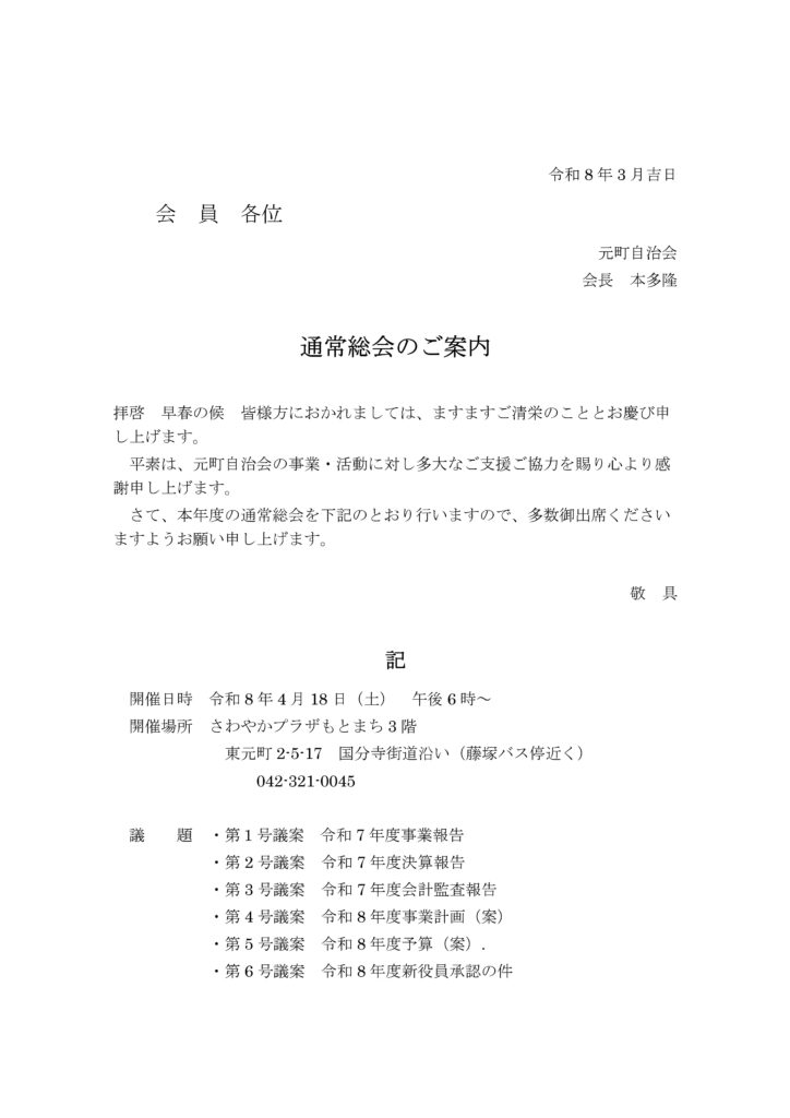 日頃より自治会活動にご理解とご協力を頂き、心より感謝申し上げます。
